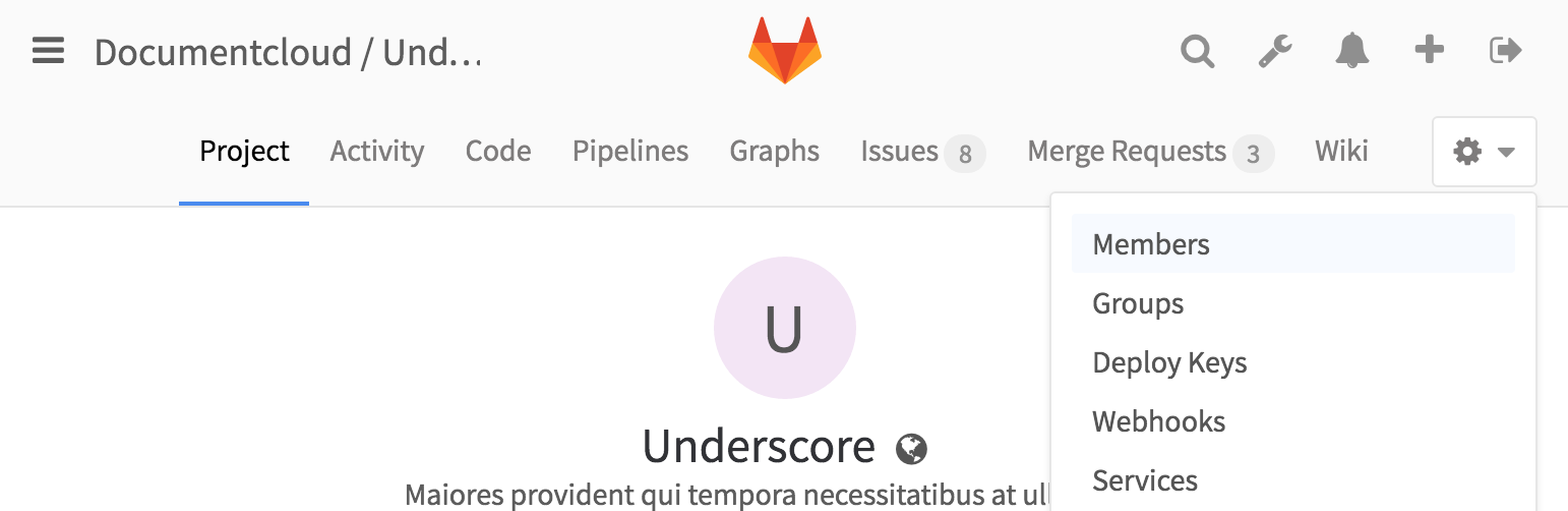 The first step to add or import a user, go to your project and click on Members in the drop-down menu on the right side of your screen.